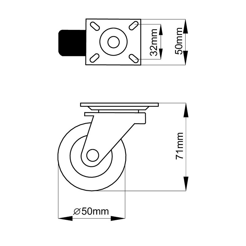 Колесо мебельное 902 КЛ-305 на площадке 50 мм