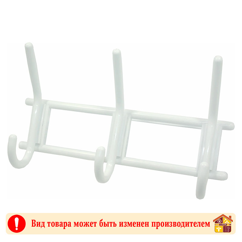 Вешалка тройная крючковая снежно-белая пластмасса