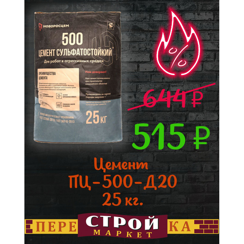 Цемент ПЦ-500-Д20 НОВОРОСЦЕМЕНТ 25 кг.
